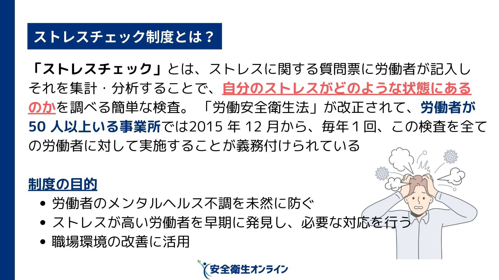 資料の無料ダウンロードはこちら→ストレスチェック制度の理解と活用 – 企業での取り組みの意義 –